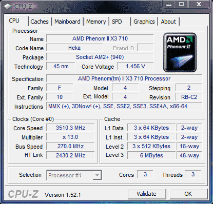 | Процессор (ядро) | AMD Phenom II X3 (Heka) |