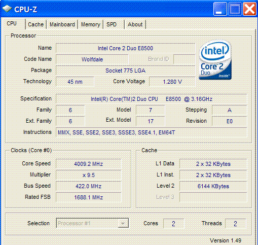 Результат разгона Intel Core 2 Duo (Wolfdale)