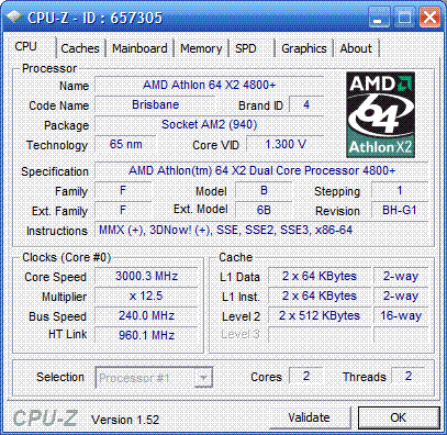 Результат разгона AMD Athlon X2 (Brisbane)
