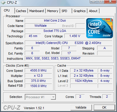 Результат разгона Intel Core 2 Duo (Wolfdale)