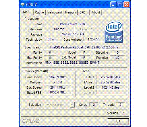 Результат разгона Intel Pentium Dual-Core (Conroe-1M)