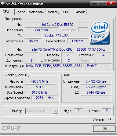 Результат разгона Intel Core 2 Duo (Wolfdale)