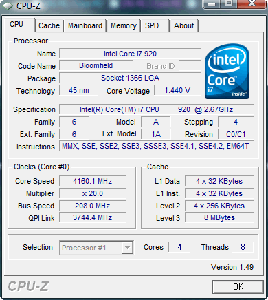 Результат разгона Intel Core i7 (Bloomfield)