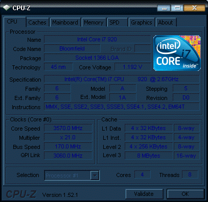 Результат разгона Intel Core i7 (Bloomfield)