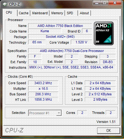 | Процессор (ядро) | AMD Athlon X2 (Kuma) |