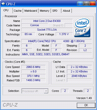 | Разгон, максимально стабильная частота (FSB x Ratio) | 2960 (370 x 8.0) |