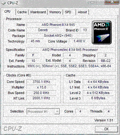 | Процессор (ядро) | AMD Phenom II X4 (Deneb) |