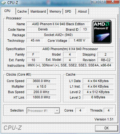 | Процессор (ядро) | AMD Phenom II X4 (Deneb) |