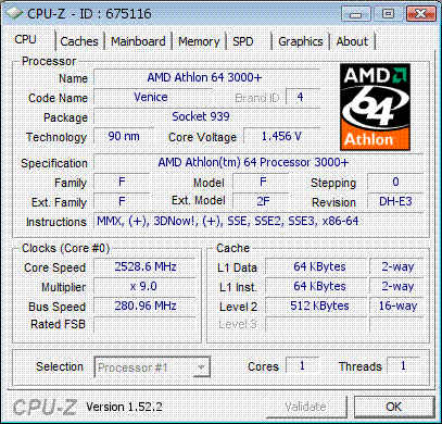 Результат разгона AMD Athlon 64 (Venice)
