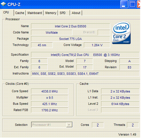 Результат разгона Intel Core 2 Duo (Wolfdale)