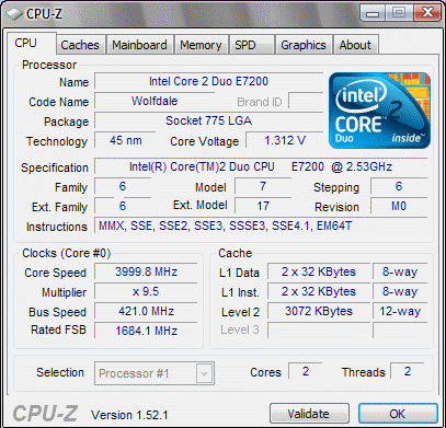 Результат разгона Intel Core 2 Duo (Wolfdale)
