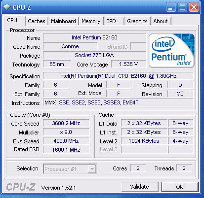 | Разгон, максимально стабильная частота (FSB x Ratio) | 3600 (400 x 9.0) |