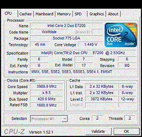 Результат разгона Intel Core 2 Duo (Wolfdale)