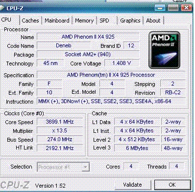 Результат разгона AMD Phenom II X4 (Deneb)
