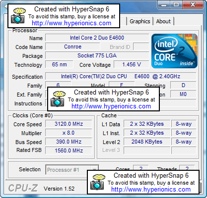 | Разгон, максимально стабильная частота (FSB x Ratio) | 3120 (390 x 8.0) |