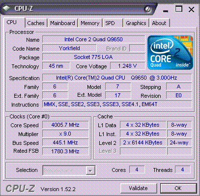 Результат разгона Intel Core 2 Quad (Yorkfield)
