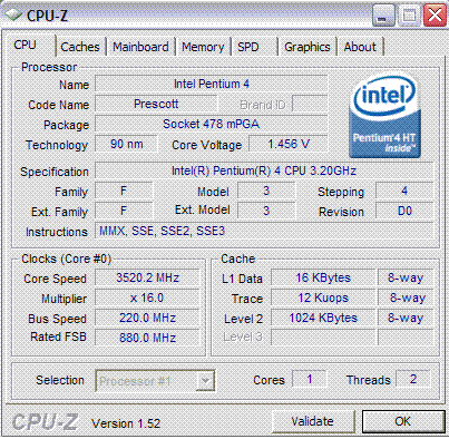 Результат разгона Intel Pentium 4 (Prescott)