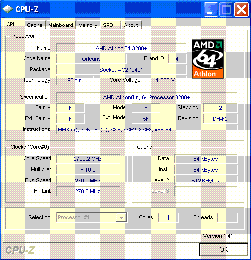 | Процессор (ядро) | AMD Athlon 64 (Orleans) |