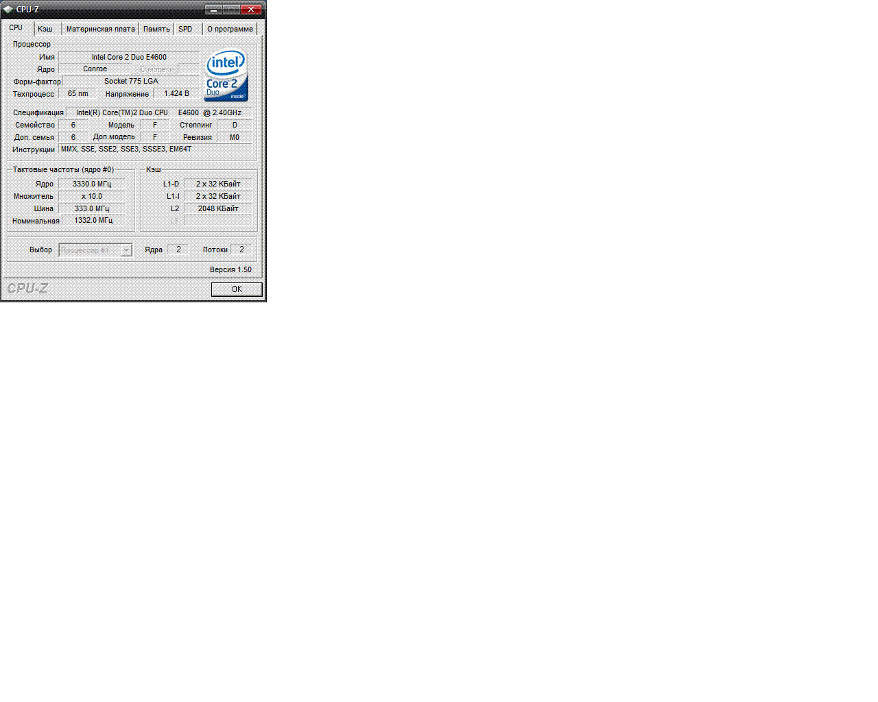 | Процессор (ядро) | Intel Core 2 Duo (Conroe-2M) |