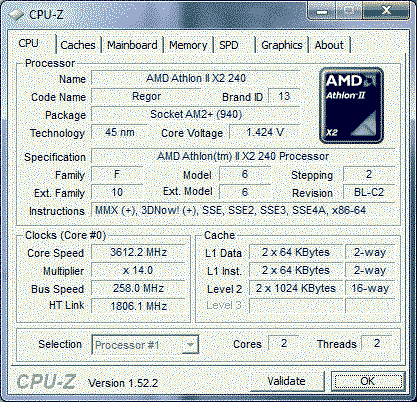 Результат разгона AMD Athlon II X2 (Regor)