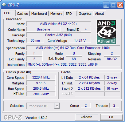 Результат разгона AMD Athlon 64 X2 (Brisbane)