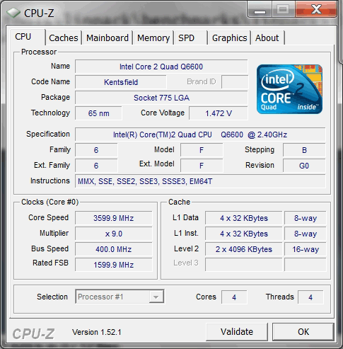 | Процессор (ядро) | Intel Core 2 Quad (Kentsfield) |