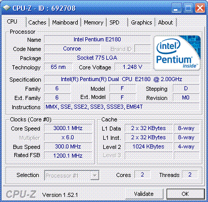 | Процессор (ядро) | Intel Pentium Dual-Core (Conroe-1M) |