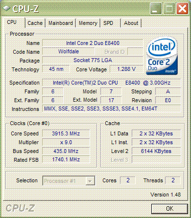 Результат разгона Intel Core 2 Duo (Wolfdale)