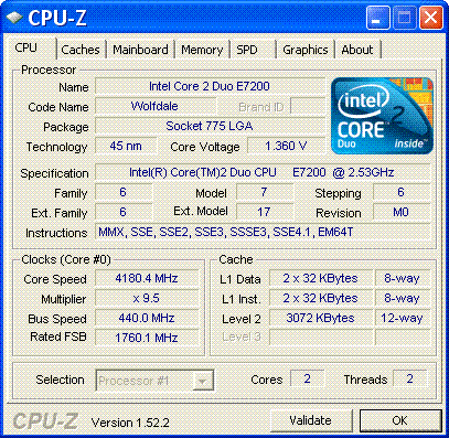 Результат разгона Intel Core 2 Duo (Wolfdale)