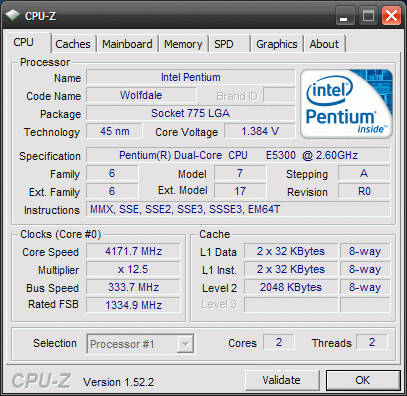 Результат разгона Intel Pentium Dual-Core (Wolfdale-2M)