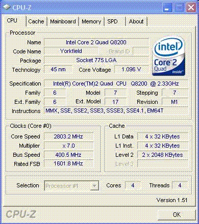Результат разгона Intel Core 2 Quad (Yorkfield)