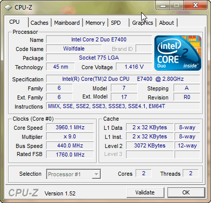 Результат разгона Intel Core 2 Duo (Wolfdale)