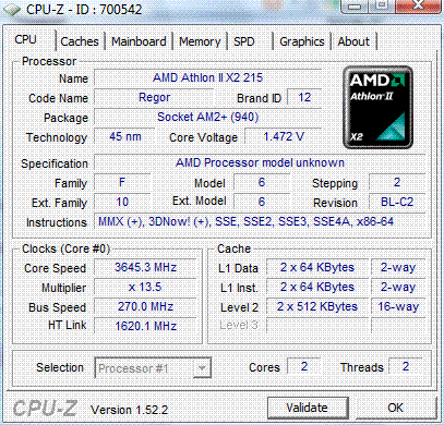 Результат разгона AMD Athlon II X2 (Regor)