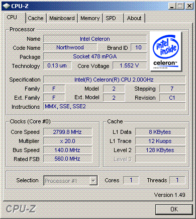 Результат разгона Intel Celeron (Northwood-128)