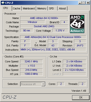 Результат разгона AMD Athlon 64 X2 (Windsor)