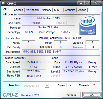 | Процессор (ядро) | Intel Pentium D (Presler) |