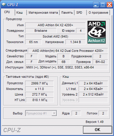 Результат разгона AMD Athlon 64 X2 (Brisbane)