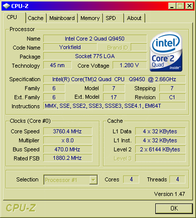 Результат разгона Intel Core 2 Quad (Yorkfield)