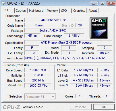| Процессор (ядро) | AMD Phenom II X4 (Deneb) |