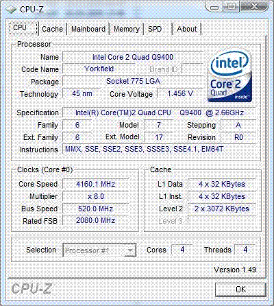 Результат разгона Intel Core 2 Quad (Yorkfield)