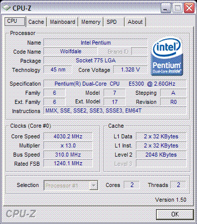 Результат разгона Intel Pentium Dual-Core (Wolfdale-2M)