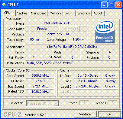 | Процессор (ядро) | Intel Pentium D (Presler) |