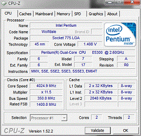 Результат разгона Intel Pentium Dual-Core (Wolfdale-2M)