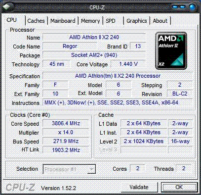 Результат разгона AMD Athlon II X2 (Regor)