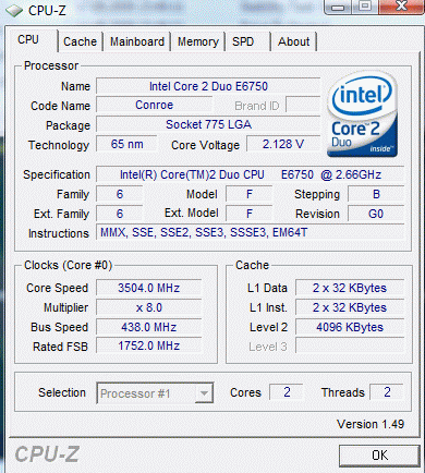 | Процессор (ядро) | Intel Core 2 Duo (Conroe) |