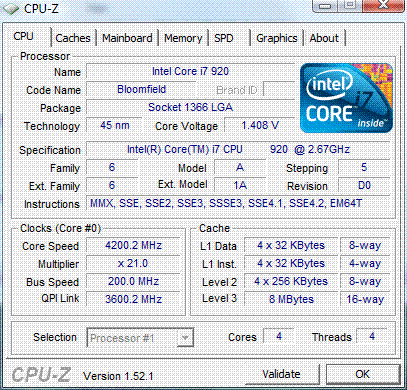 | Разгон, максимально стабильная частота (FSB x Ratio) | 4200 (200 x 21.0) |