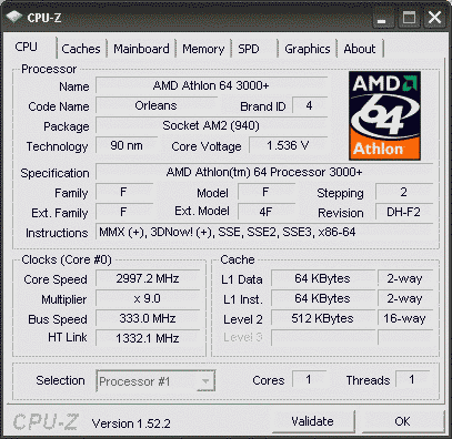 Результат разгона AMD Athlon 64 (Orleans)
