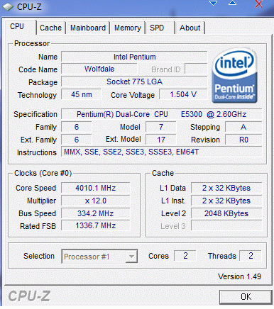 Результат разгона Intel Pentium Dual-Core (Wolfdale-2M)