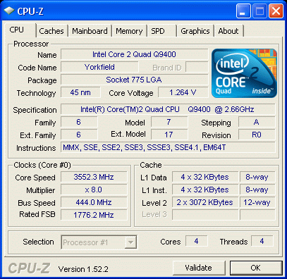 Результат разгона Intel Core 2 Quad (Yorkfield)