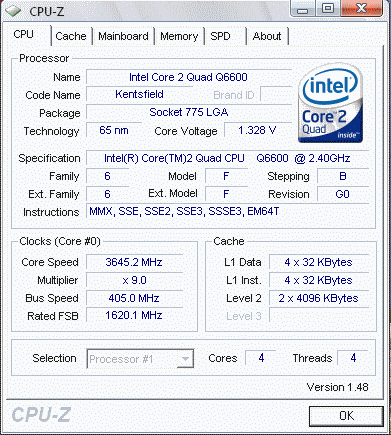 Результат разгона Intel Core 2 Quad (Kentsfield)